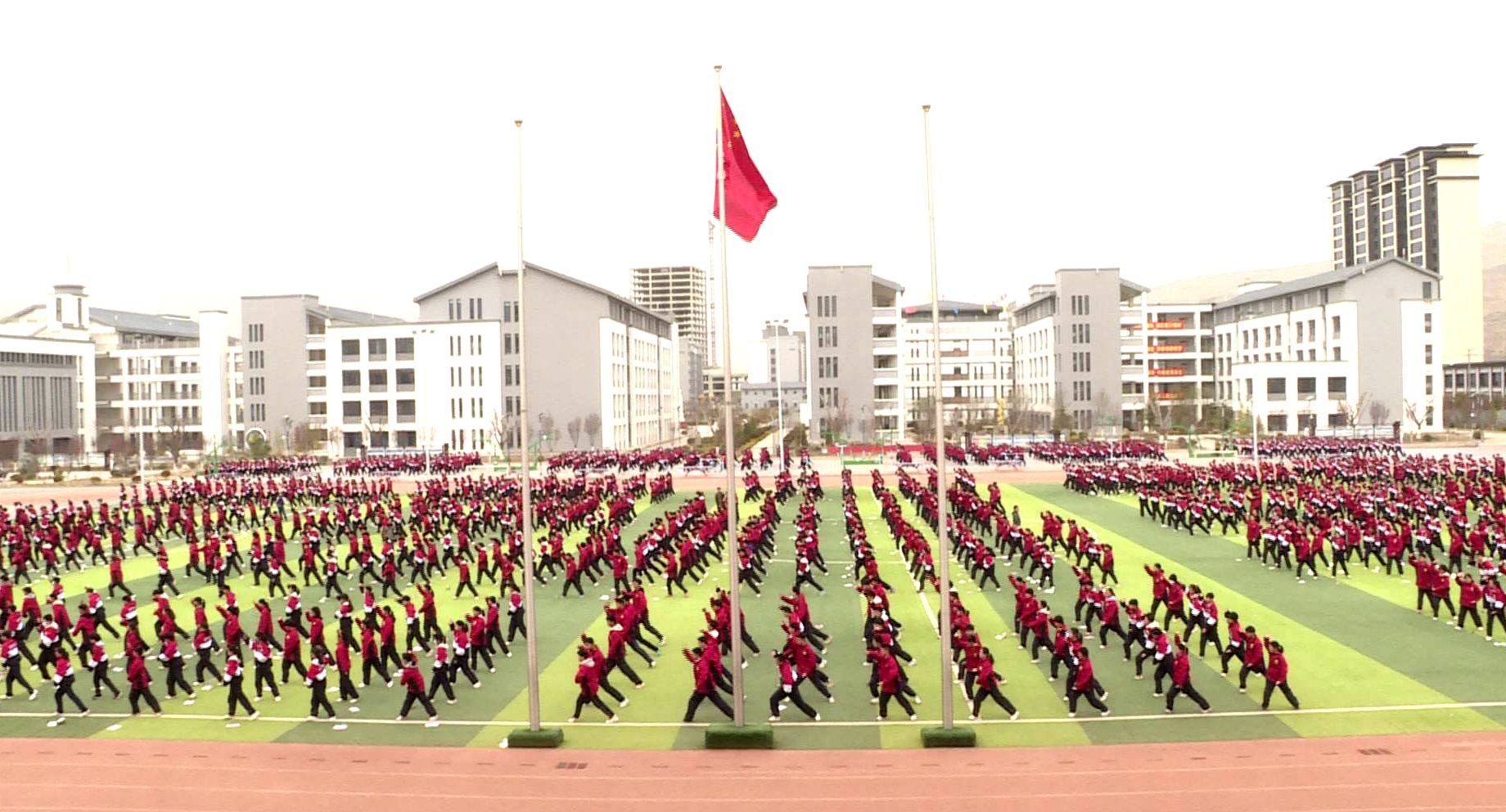 新武山讯(记者 赵云霞)3月29日上午,武山一中大操场上热闹非凡,高一级全体学生齐聚于此,举行了一场别开生面的武术操《英雄少年》展演活动。