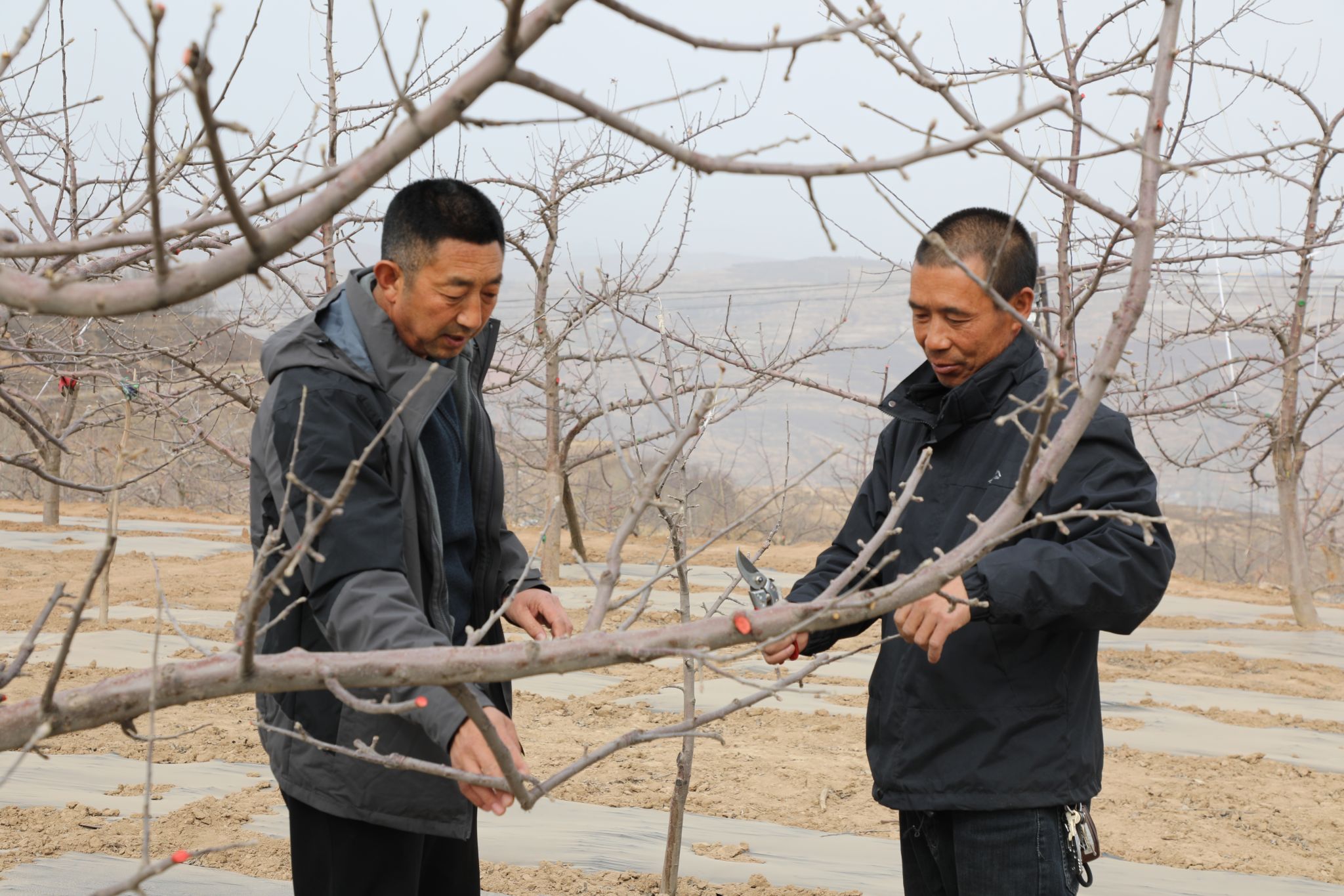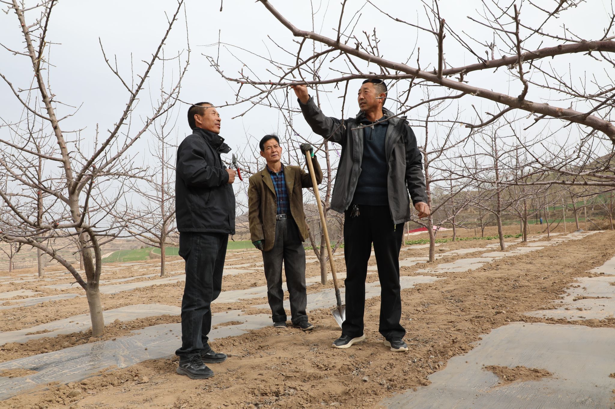 在村庄的另一头,有18年果树种植经验的汪朝晖正在利用闲暇时间给村民悉心讲解苹果树修剪技术。通过“传经送宝”,助力春耕生产,促进大家共同增收致富。