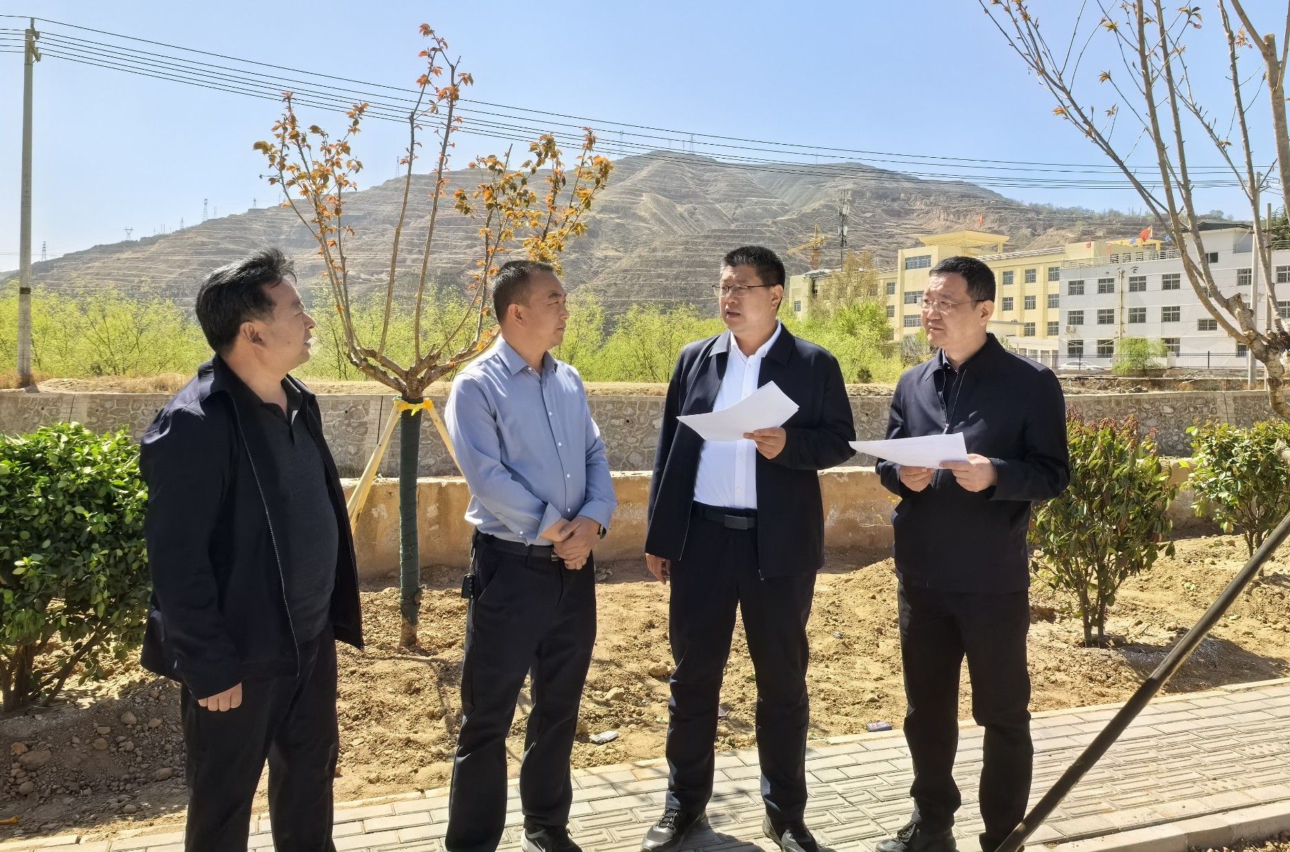 4月14日,县委副书记、县长赵百祥调研全县住建项目,副县长李峰一同调研。