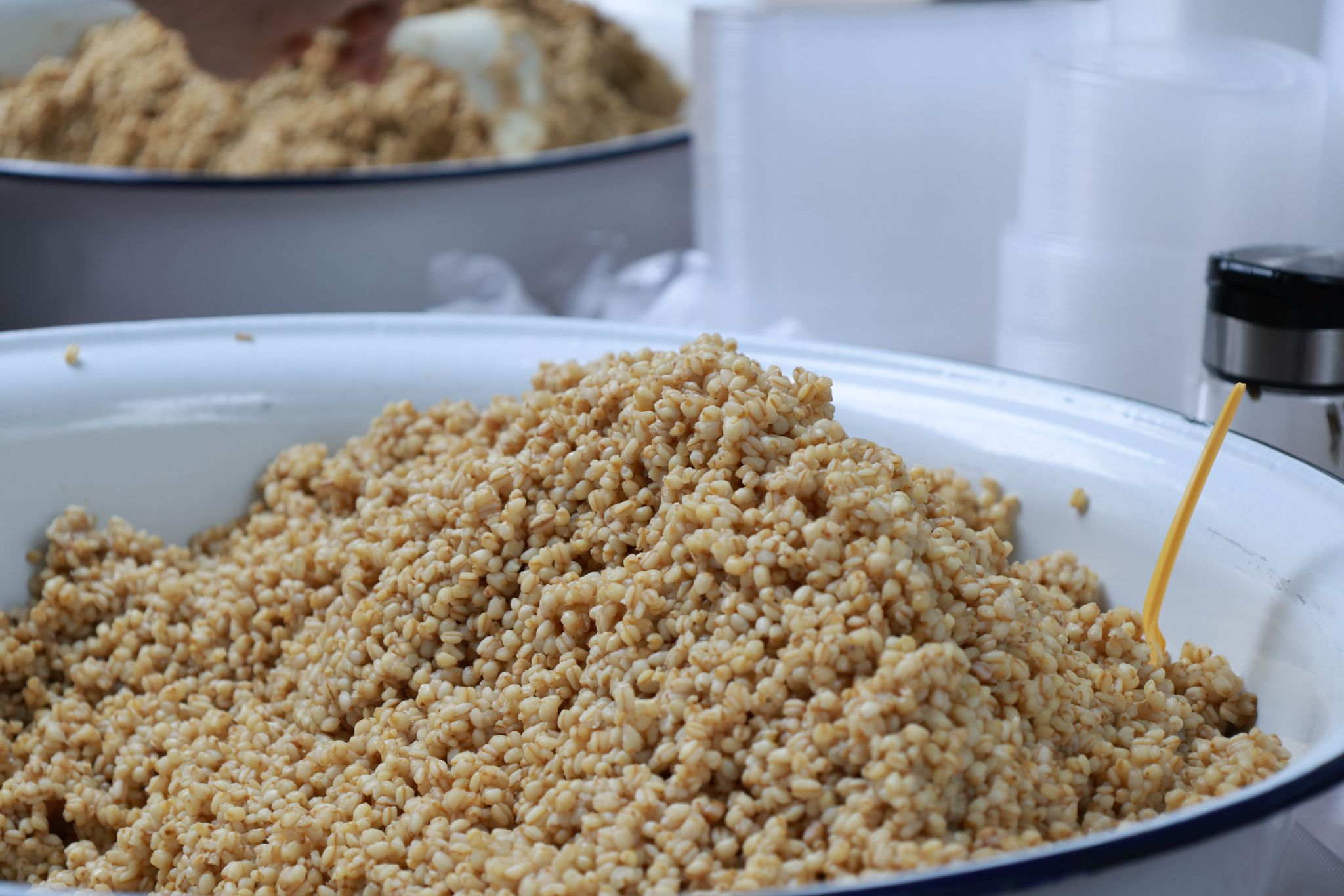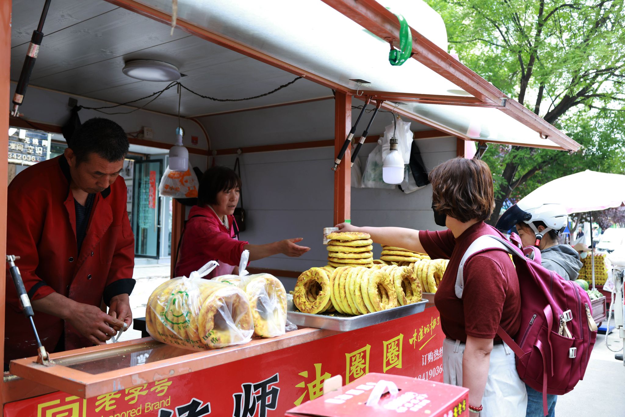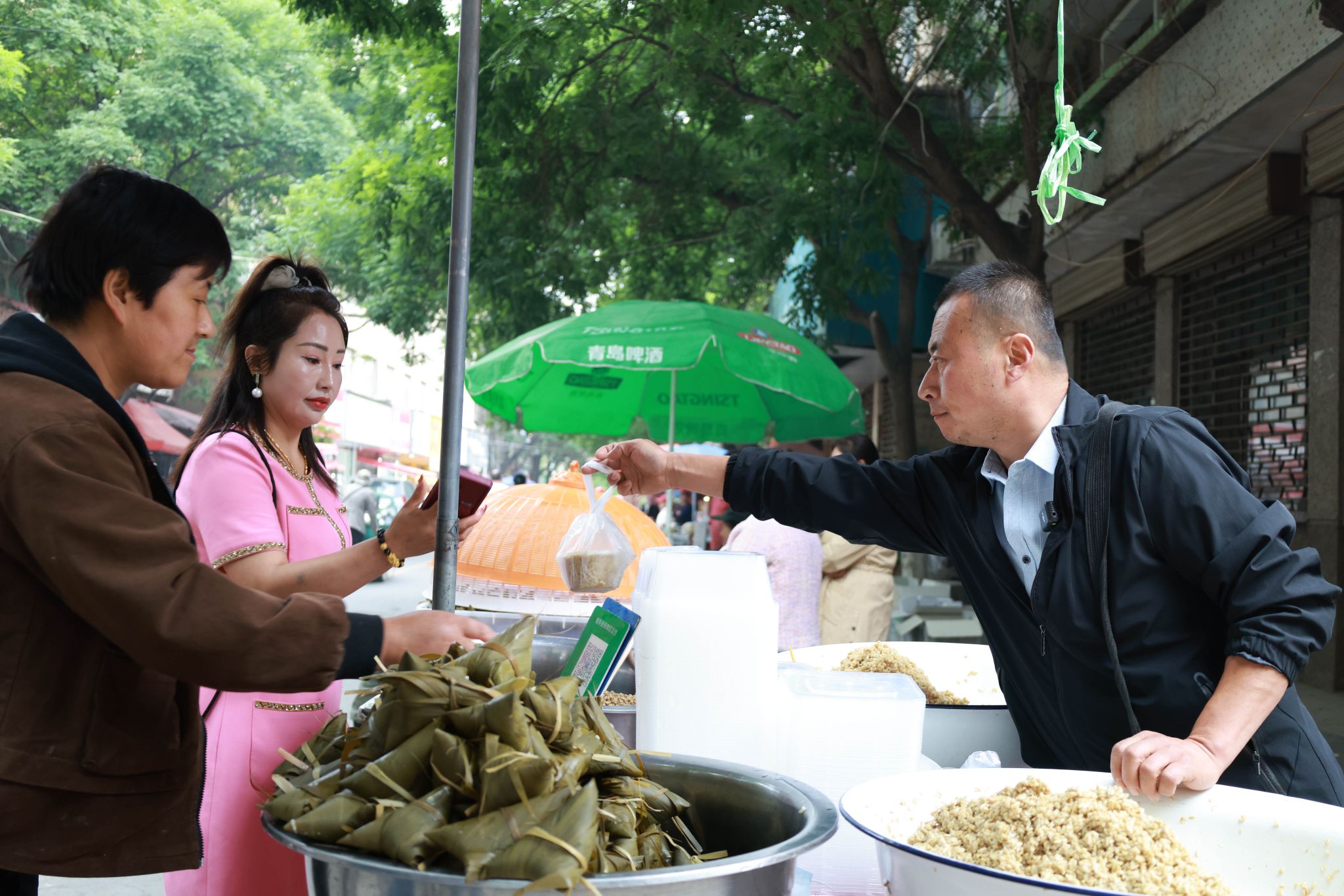不远处,经营甜胚子摊位二十余载的徐强强同样忙碌:“燕麦、青稞、小麦三种口味的甜胚子供不应求,搭配自家特制的小粽子,口感更添软糯,老人孩子都爱买。”
