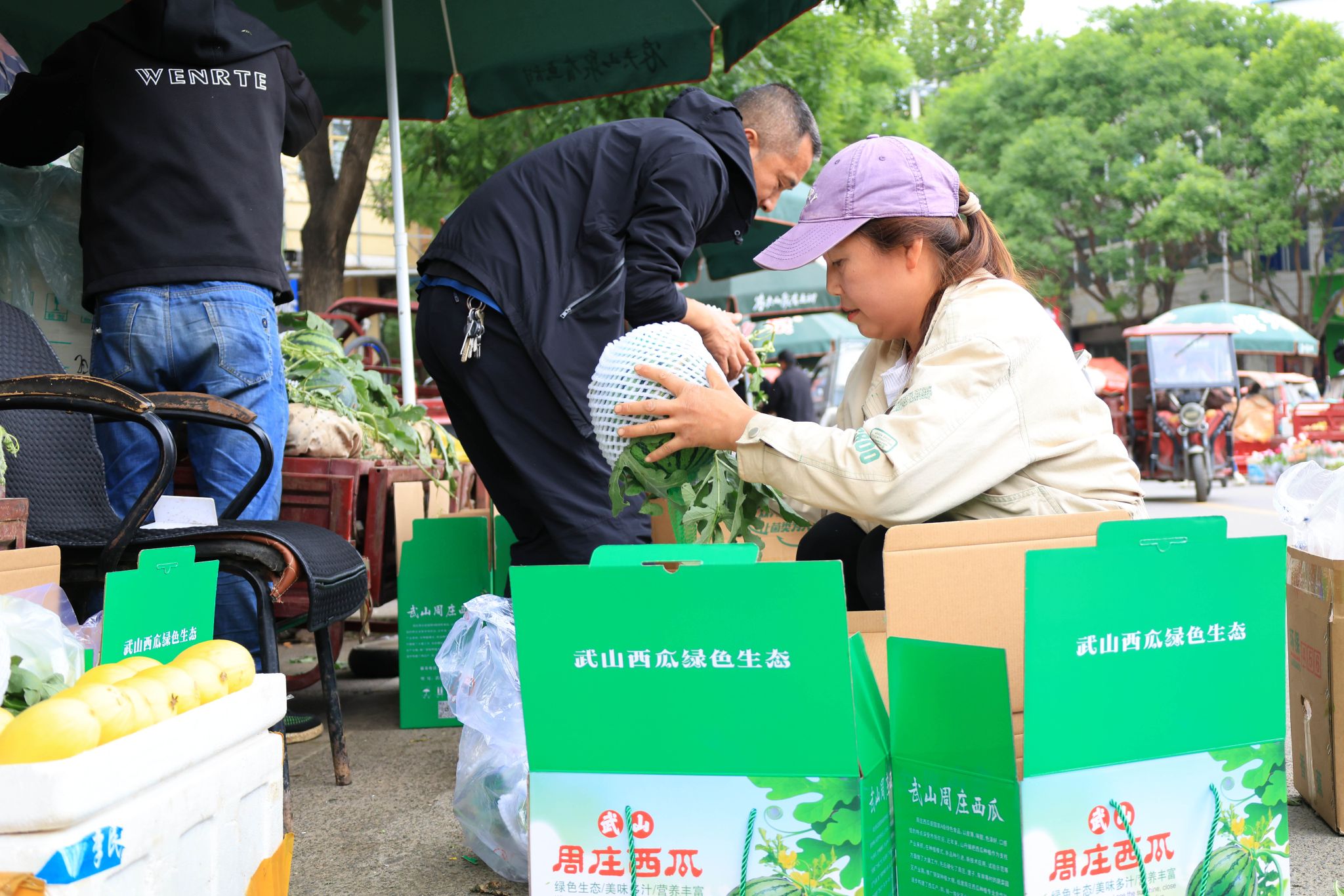 特色小吃市场同样火爆,金黄酥脆的武山油圈圈成为节日餐桌“明星”。“外脆内软、油香四溢,配凉皮和罐罐茶堪称一绝,礼盒装销量翻了三倍,外地客户直夸有档次。”摊主于乐芳难掩喜悦。作为“武山十鲜”之一的塔麻香瓜与周庄西瓜也跻身节庆“新宠”,前者皮薄瓤糯、清香扑鼻,后者沙瓤蜜甜、糖度超12度,农户戏称“甜得粘嘴唇”,节日礼盒订单量同比激增40%。