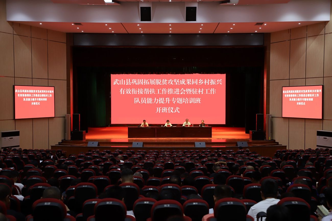 新武山讯(记者 彭雪 康慧慧)8月6日,武山县举行巩固拓展脱贫攻坚成果同乡村振兴有效衔接帮扶工作推进会暨驻村工作队员能力提升专题培训班开班仪式。县委常委、组织部部长胡小云出席会议并讲话,县委常委、副县长刘忠锋主持会议,县领导张志林、许鹏云,县级帮扶单位分管领导、全体驻村工作队队员、县驻村帮扶专班成员、各乡镇驻村帮扶工作队总队长及干事参加会议。
