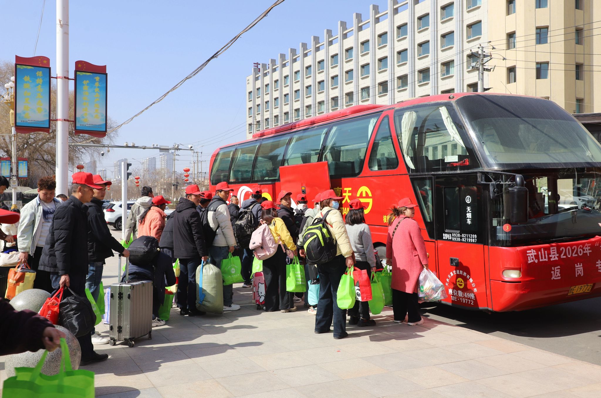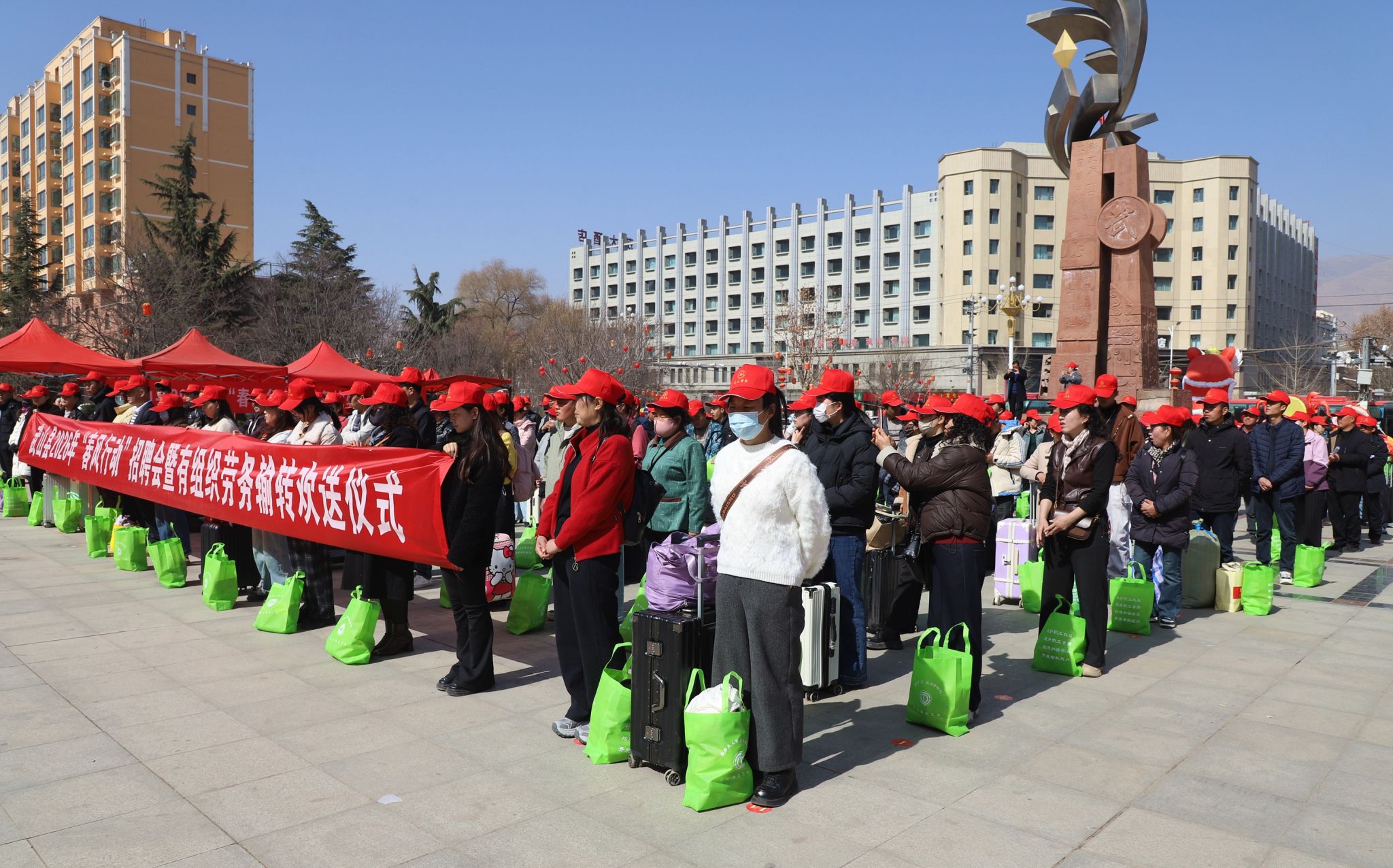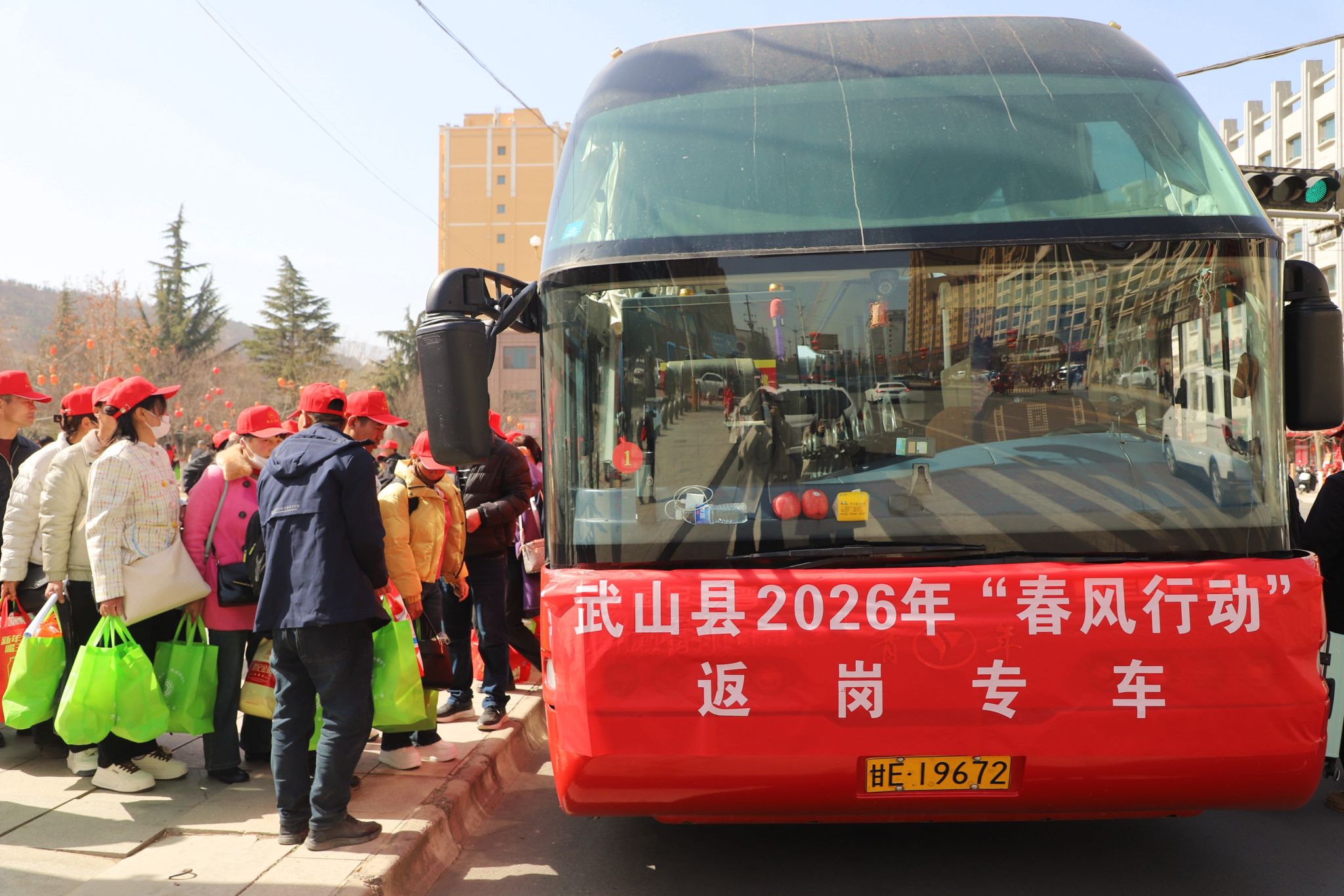 新武山讯(记者 车彤瑶)踏春而行,2月24日,农历正月初八,武山县举行2026年“春风行动”招聘会暨有组织劳务输转欢送仪式,320多名务工人员搭乘春风快车,“点对点、一站式”奔赴山东烟台、青岛,浙江宁波、绍兴,安徽滁州等地,开启返岗复工新征程。