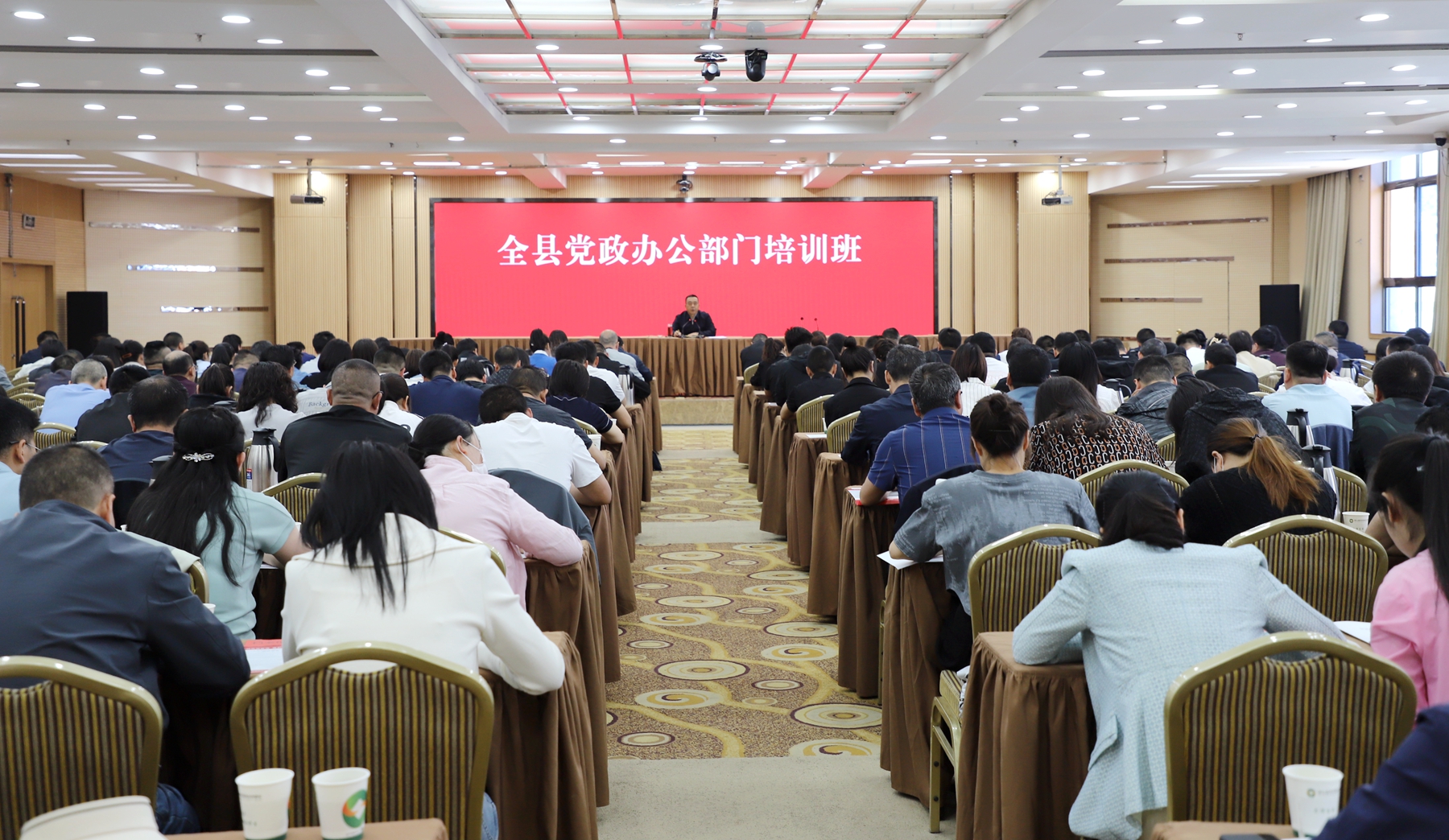 6月6日,县委书记王新强为全县党政办公部门培训班学员专题授课。